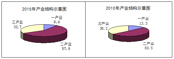 ——结构逐步趋优。2015年,非公有制经济三次产业结构由上年的9.5:57.7 :32.8 调整为9.4:57.9 :32.7 ,一、三产业比重均下降了0.1个百分点,二产业上升了0.2个百分点。与“十一五”末相比,一、三产业比重下降了3.9和3.5个百分点,二产业比重上升了7.4个百分点。在第二产业中,工业增加值比重47.3%,比“十一五”末提高7.8个百分点。