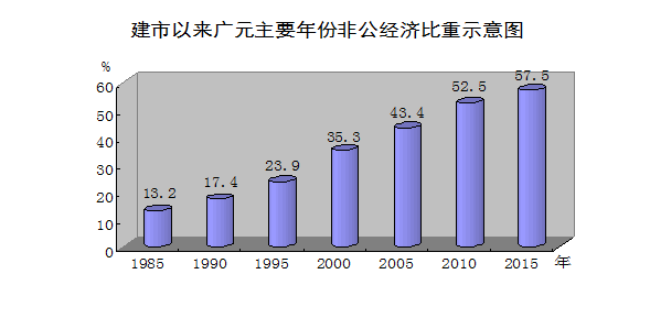 ——占比偏低。2015年,全市非公有制经济占全省非公有制经济的比重为1.9%,虽比“十一五”末提高了0.1个百分点,但仍居全省第17位,在川东北五市中居第4位,仅高于巴中市0.3个百分点,分别低于南充、广安、达州3.1、1.3和2.6个百分点。