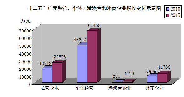 ——贡献明显增强。从经济增长看,“十二五”期间全市非公有制经济均快于同时期经济增长,非公有制经济对经济增长的年度贡献率均在60%以上,拉动经济增长均在5个百分点以上。非公有制经济已成为拉动经济增长的重要力量。从税收收入看,“十二五”以来,全市非公有制经济实现的税收大幅增长。其中,2015年末私营企业实现税收(国地税)25876万元,比“十一五”末增长38.3%;个体经营实现税收67458万元,比“十一五”末增长38.7%;港澳台投资企业实现税收1429万元,比“十一五”末增长142.2%;外商投资企业实现税收11739万元,比“十一五”末增长38.5%。非公有制经济对税收增长的贡献率稳步提高。从就业人数看,2015年,全市个体工商户从业人员20.87万人,比“十一五”末增长50.6%;私营企业从业人员11.20万人,比“十一五”末增长95.1%。非公有制经济的发展为社会提供了大量就业岗位。