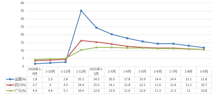 (二)基数效应几近消失。全国月度增速从1-2月(1月免报)的35.1%回落到9月的3.1%,全省从1-2月的16.4%回落到9月的7.2%。全市四季度月度基数逐月攀高,部分月份和地区特别突出,影响增速提升。