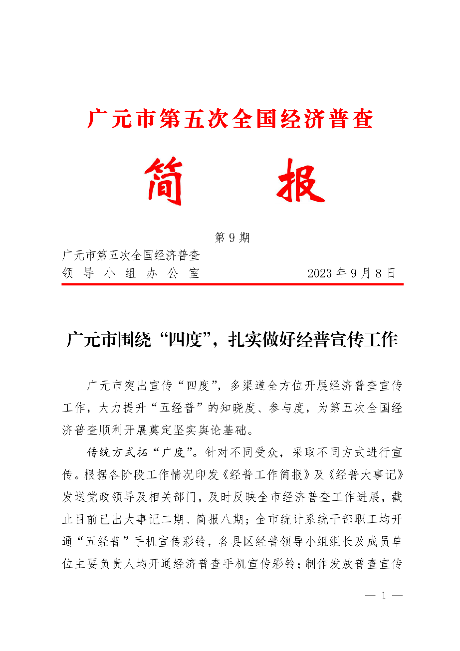 广元市第五次全国经济普查简报(第9期)