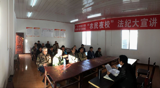 市统计局法纪宣传员用通俗易懂的语言、生动鲜活的案例,向农村基层干部、党员和贫困户进行了法纪大宣讲。他详细讲解了涉及公民基本权利和义务的《宪法》、《选举法》、《婚姻法》、《义务教育法》;涉及农业生产方面的《农业法》、《农村土地承包法》、《种子法》;涉及市场经济方面的《合同法》;涉及维护农村社会稳定方面的《刑法》、《治安管理处罚条例》、《信访条例》;涉及法律救济、保护合法权益的《刑事诉讼法》、《民事诉讼法》、《国家赔偿法》、《法律援助条例》等法律法规。并要求村支两委尤其是村支部书记要强化政治意识、法治意识、民主意识、自律意识、敬畏意识、底线意识等6个意识,带头学法,不碰红线(党纪国法),守住底线(中央八项规定省委十条规定市委六个带头),依法办事,秉公用权,切实维护法律尊严,教育并引导群众学会用法律武器来维护自身的合法权益。认真学习和宣传党的十九大报告,克服“等、靠、要”思想,主动作为,抓好集体经济发展,带领农民脱贫致富奔小康。