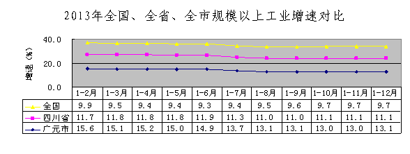 2013年全部工业增加值增速各季保持在13.3%以上,规上工业累计增速各月保持在13%以上,且一直保持全省前五位。全年全部工业增长13.7%,其中,规模以上工业增长13.1%,增速比全省高2.0个百分点,比全国高3.4个百分点,增速居全省第3位,比去年提升1位。