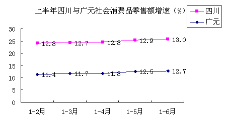 ---商品零售增长较快。1-6月商品零售98.09亿元,增长12.8%。其中,中西药类增长21.7%,粮油、食品、饮料、烟酒类增长16.2%,家具类增长16.5%,金银珠宝类增长13.8%,建筑及装潢材料类增长13.4%。餐饮收入15.71亿元,增长11.6%,商品零售增速比餐饮收入增速快1.2个百分点。