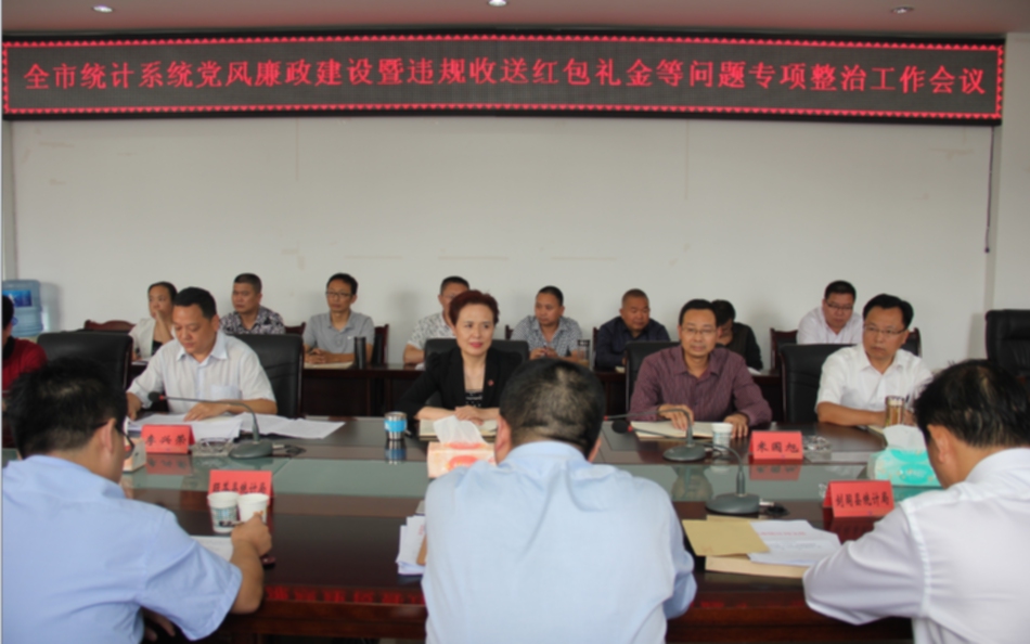 为认真贯彻落实全省统计系统党风廉政建设暨违规收送红包礼金等问题专项整治工作视频会议精神,进一步推进全市统计系统党风廉政建设,安排部署近期重点统计工作。9月23日,广元市召开了全市统计系统党风廉政建设(违规收送红包礼金等问题专项整治)暨三季度经济形势分析会议。市统计局党组书记李兴荣主持会议并讲话。