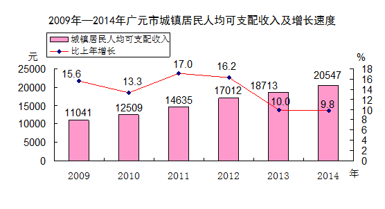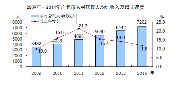 城乡居民收入持续增加。城镇居民人均可支配收入20547元,比上年增长9.8%;人均生活消费支出12486元。农民人均纯收入7202元,增长11.8%;人均生活消费支出5835元。