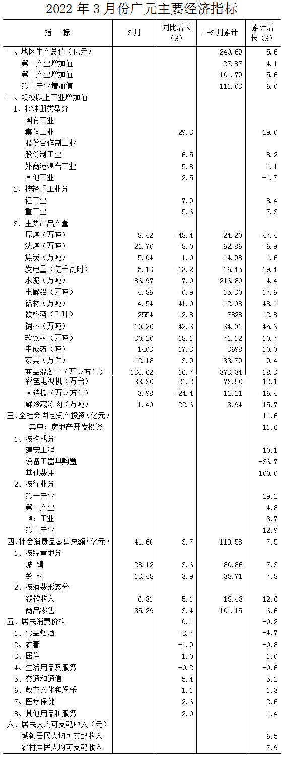 2.物价、城乡居民收入和畜禽数据由国家统计局广元调查队提供;就业数据由市人力资源和社会保障局提供;存贷款余额由中国人民银行广元市中心支行提供。