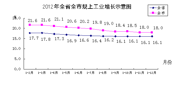 工业发展良好。实现工业增加值189.91亿元,增长22.1 %。工业对经济增长的贡献率为58.58%,拉动经济增长8.08个百分点,贡献率和拉动力均居国民经济各行业之首。其中,规模以上工业实现增加值171.5亿元,增长18.0%(如下图),比全省平均增速快1.9个百分点。