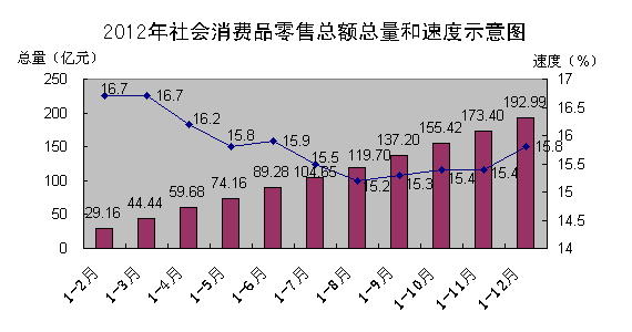 一是城镇市场好于乡村市场。城市市场实现零售额135.68亿元,增长16.3%;乡村市场实现零售额57.31亿元,增长14.5%。城镇市场快于乡村市场1.8个百分点;二是餐饮业增长最快。餐饮业实现零售额28.25亿元,增长15.9%;批发业实现零售额29.98亿元,增长15.8%;零售业实现零售额133.02亿元,增长15.7%;住宿业实现零售额1.74亿元,增长15.8%,餐饮业分别比批发业、零售业和住宿业快0.1 、0.2和0.1个百分点;三是主要商品销售趋旺。在限额以上的主要大类商品销售中,粮油、食品、饮料、烟酒类、日用品类、金银珠宝类,石油及制品类等增长较快;四是对外贸易稳步增长。实现进出口总额33844万美元,增长14.0%。其中,出口总额27266万美元,增长3.9%。