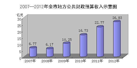 财税收入增长较快。地方公共财政收入26.83亿元,增长17.9%(如下图)。其中,税收收入19.82亿元,增长17.8%;非税收入7.01亿元,增长18.1%。