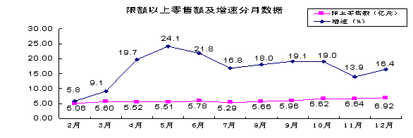 企业增速低于个体经营户。限上企业实现零售额53.05亿元,增长16.5%;限上个体经营户实现零售额16.90亿元,增长24.9%。企业增速低于个体经营户8.4个百分点。