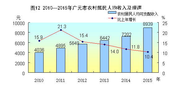 注:2010年-2014年为农民人均纯收入,2015年为农村居民人均可支配收入,增速为可比速度。