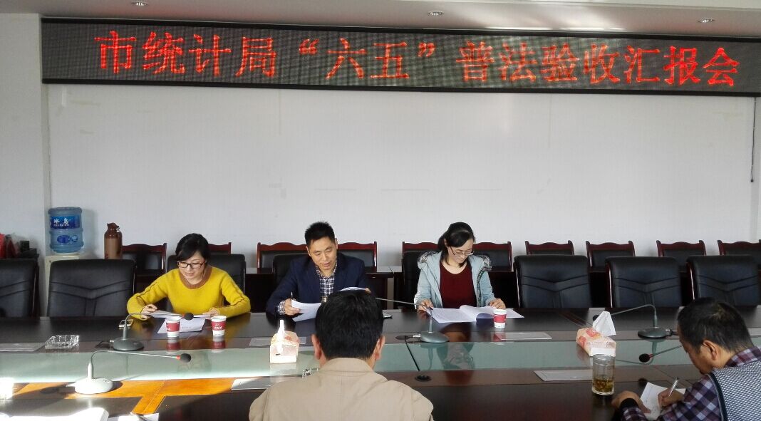 根据市依法治市办、市委宣传部、市司法局《关于开展“六五”普法检查验收工作的通知》要求,10月26日,广元市“六五”普法第三检查组到市统计局开展检查验收。汇报会由市统计局纪检组长朱建军主持,市统计局副县级调研员、法规科科长穆国强汇报了五年来“六五”普法工作开展的情况、存在的问题以及下步工作打算。