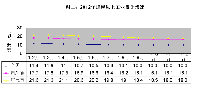 县区工业发展加快,在全市的份额提高。县区属工业占比由2011年的64.8%上升到2012年的66.5,提升了1.7个百分点。四县三区除元坝区、青川县占比略有下降外,其他县区均不同程度上升,旺苍县占比最大(18.3%),利州区占比提升最快(1.2个百分点)。