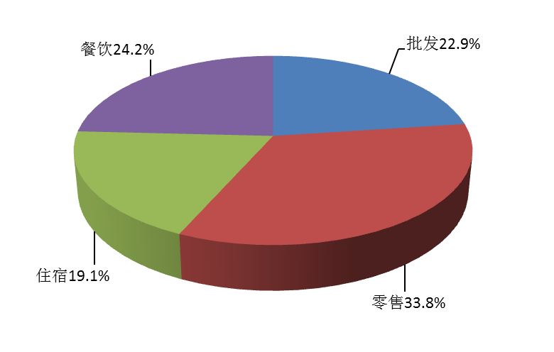 (一)从限上单位个数看,零售业单位53个,占总数的33.8%;批发业36个,占总数22.9%;餐饮业38个,占总数24.2%;住宿业30个,占总数19.1%。