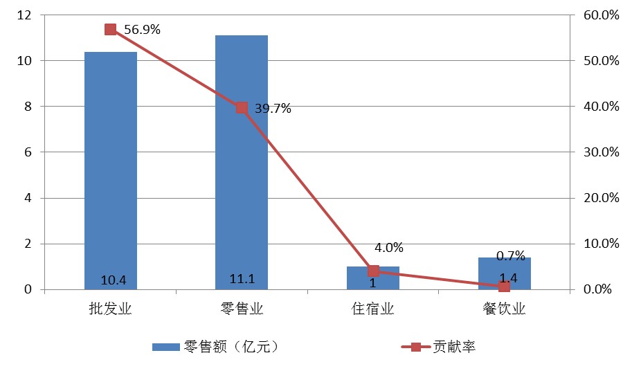 图二 批零住餐行业零售额与贡献率情况示意图